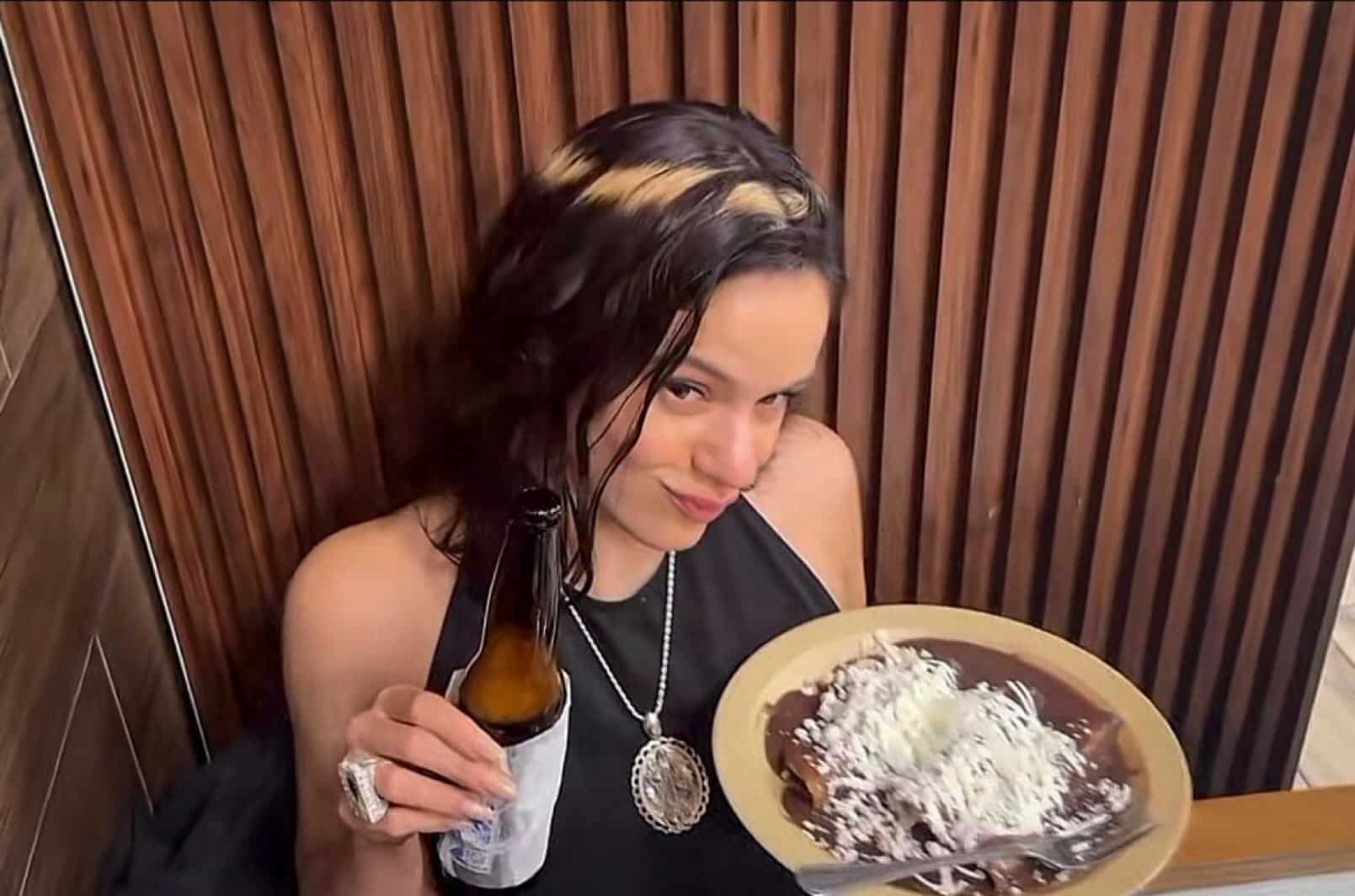 “Primera vez que como pozole, chicos”, dice Rosalía mirando a la cámara de un celular. Ella misma se está grabando. Se lleva la cuchara a la boca, mastica, cierra los ojos y asiente con la cabeza en señal de que le ha gustado, pero se detiene de golpe porque el bocado le ha picado. “Es traicionero, ¿eh? Pica. Pero está muy bueno, me sorprende que tenga lechuga”, dice. Además del pozole, probó enfrijoladas y agua de horchata con canela encima. Todo le ha gustado. La artista española se encuentra en Ciudad de México promocionando su nuevo disco Lux, que se estrena el 7 de noviembre. Ha ido a cenar a una de las cadenas de comida mexicana más populares de la capital y desde ahí graba el vídeo. Unas horas antes presentó de manera exclusiva su nuevo álbum, con una primera reproducción para el público en una sala en Ciudad de México. “Feliz semana del Día de Muertos”, se escucha decir a Rosalía en un video en X mientras la gente vitorea. “El disco está inspirado en mujeres santas alrededor del mundo, en el misticismo femenino. Y estuve un año, sola, haciendo las letras”, explica y concluye agradeciendo a la gente por escuchar y por haber asistido.